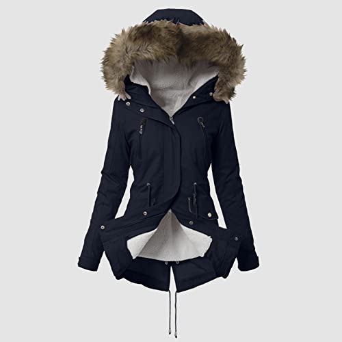 Specification: Lalaluka Damesmantel met lange mouwen, ritssluiting, bontkraag, gevoerde mantel, modejas, winterjas, sweatjack, winterjas, donsjack, parka