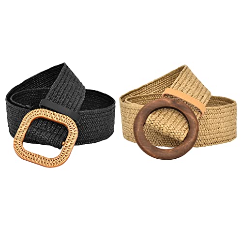 Specification: DUOXIN 2 Stuks Stro Geweven Elastische Stretch Taille Riemen, Mode Boho Dames Gevlochten Riem Etnische Stijl Geweven Riem Brede Jurk Riem Voor Vrouwen Meisjes, Zwart+bruin