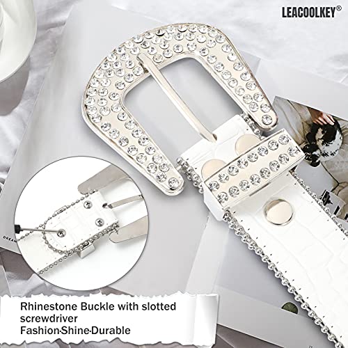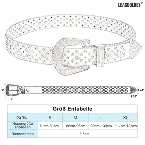 Specification: LEACOOLKEY Strass-riem voor dames, voor jeans, Western Cowgirl studs punk PU leren riem, dames zwarte strassriem, fit broekmaat 73 cm-83 cm