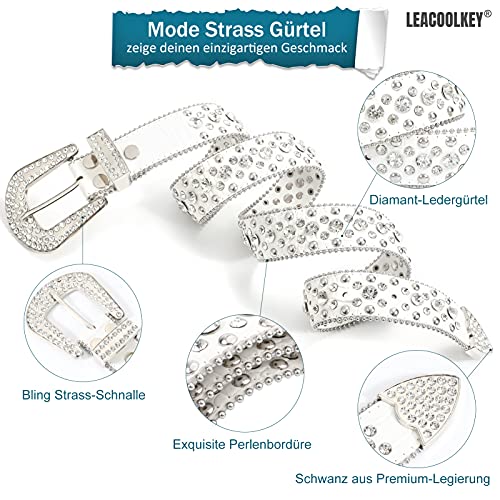 LEACOOLKEY Strass-riem voor dames, voor jeans, Western Cowgirl studs punk PU leren riem, dames zwarte strassriem, fit broekmaat 73 cm-83 cm
