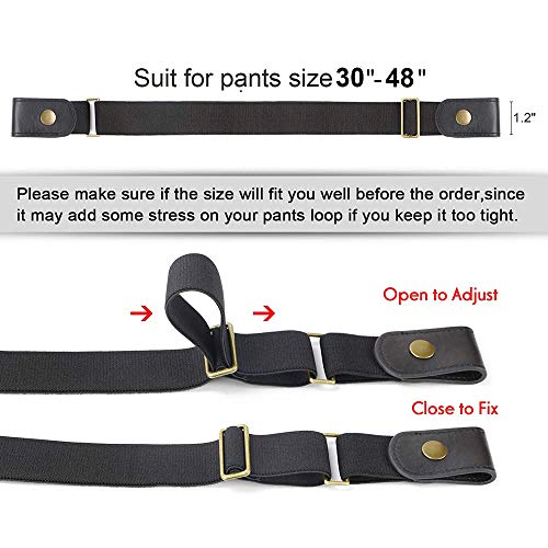 EASY ADJUSTABLE BELT SIZE: Belt width: 3cm/1.2inch;One size: can be adjust from 70cm to 120cm, fitting waist size range 30″-48″. Buckle Free Belts adjustable length, if it is too big or too small, just adjust it by sliding the metal rod to get the right size.