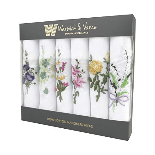 Specification: Set van 6 dames/dames witte zakdoeken, bloemen geborduurde collectie met satijnen streep randen, 100% katoen, 29 x 29 cm