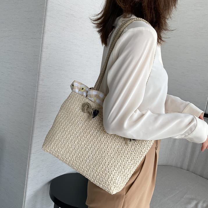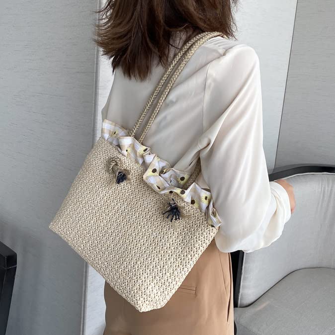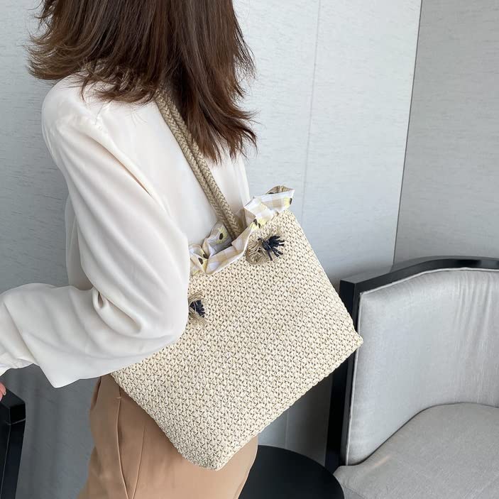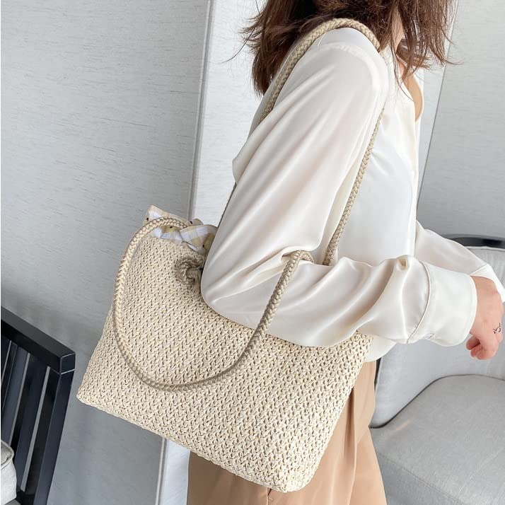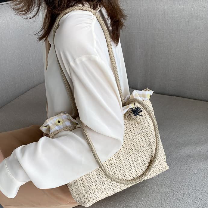 Summer Trend Straw Shoulder Bags Hit Color Handbags for Women Matching Tote Bag (Color : A Size : One Size) (A One Size)