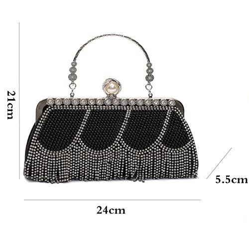 Womens Clutches Bling Tassel Avond Handtassen met Kettingriem Elegante Sequin voor Bruiloft Prom Diner Avond Party Purse,zwart