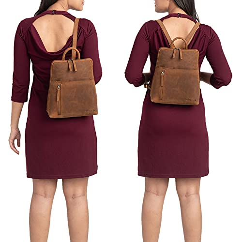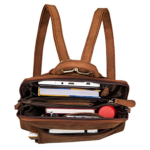 STILORD ‘Holly’ Kleine Rugzak Dames Leer Vintage Backpack Lederen Mini Rugzak Handtas Rugtas voor 10.1 Inch Tablet Schoudertas Schooltas Dagrugzak, Kleur:tan donker – bruin