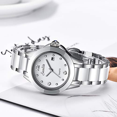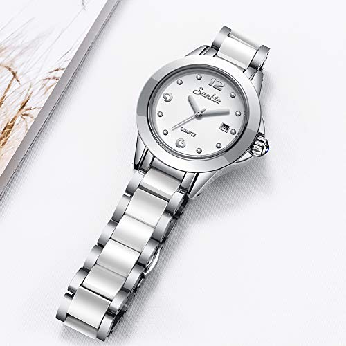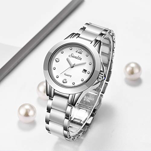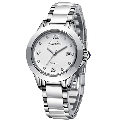 Hoge kwaliteit: Japans kwartsuurwerk en batterij bieden een nauwkeurige timing en levensduur van meer dan 3 jaar, dik en comfortabel roestvrijstalen zilveren band zal nooit vervagen (zal DIY-tool sturen kan de bandgrootte aanpassen).