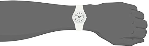 Witte plastic behuizing met een witte siliconen band. Vaste witte plastic rand. Witte wijzerplaat met zwarte wijzers en Arabisch cijfer uur markers. Dial Type: Analoog. Lichtgevende handen. Quartz uurwerk. Trek/duw kroon. Solide zaak terug. Grootte kast: 34 mm. Ronde behuizing vorm. Tang gesp. Waterbestendig op 30 meter/100 voet. Functies: uur, minuut, tweede. Casual horloge stijl. Swatch Just White Soft Dames Rubber Horloge GW151O.