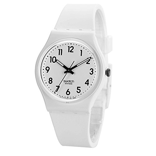 Swatch GENT STANDAARD Quartz siliconen band, wit, 16 casual horloge (Model: GW151O), Kleur: wit, riem