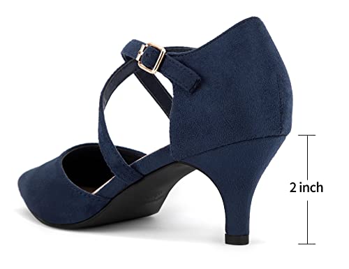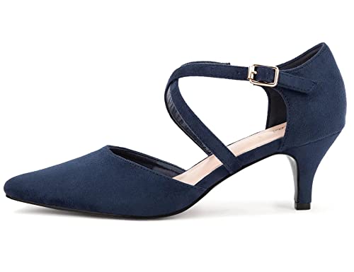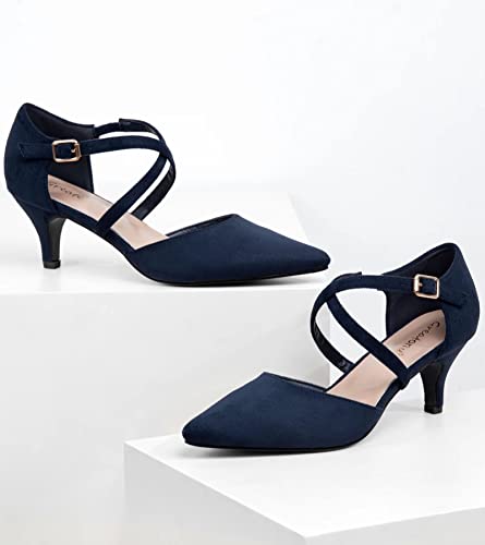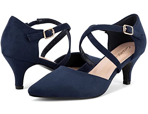 Greatonu Dames Pointed Toe Court Schoenen met Enkelband en Kitten Hiel