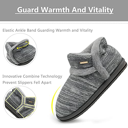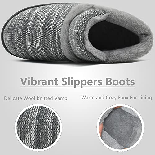 KuaiLu Huis Sloffen Laarzen Dames Winter Warme Pluche Bontge Breid Pantoffels Bootie Vrouwen Memory Foam Slippers Boots Pluizig Fleece Huispantoffels Antislip Harde Zool Huisschoenen
