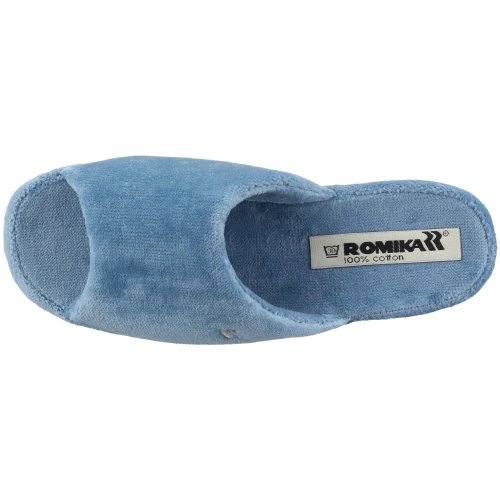 Romika badstof pantoffels. Romika comfortabele, flexibele en antislip rubberen buitenzool, bovenmateriaal, voering en voetbed van soepel zacht, textiel, wasbaar op 30 graden, flexibele en antislip rubberen buitenzool met 40 mm hakhoogte