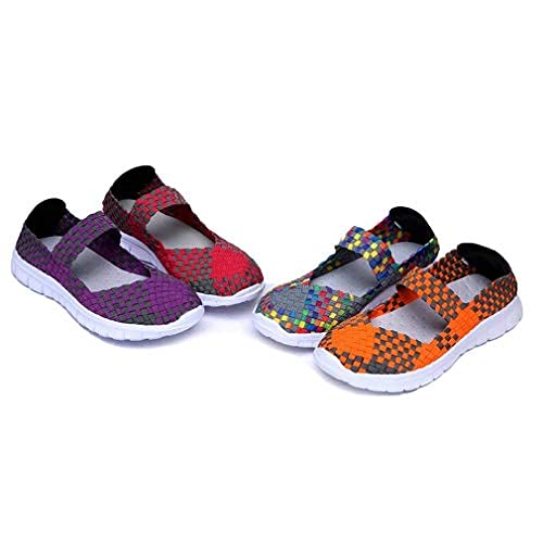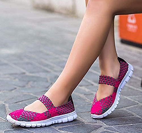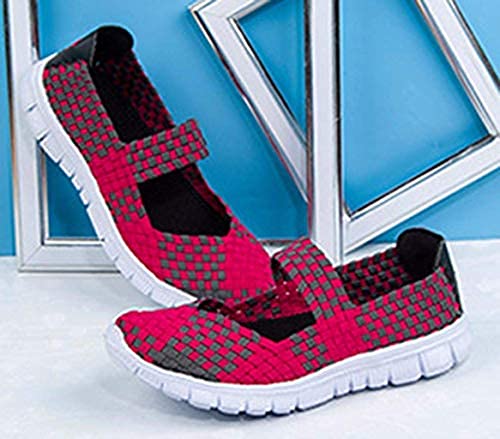 ROHSCE Vrouwen Geweven Lichtgewicht Elastische Trainer Comfort Slip On Sport Waterschoenen Kijk chic in mand weven stretch elastische slip-on flats. Top comfortabel in de lente en zomer