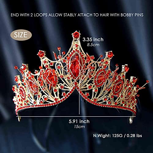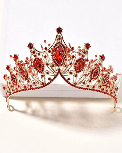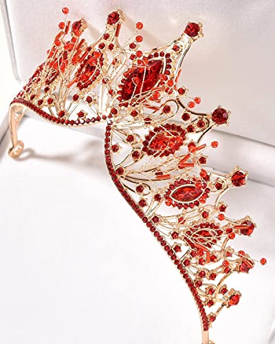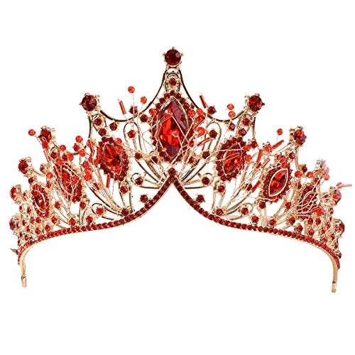 Specification: Bruids Bruiloft Tiara, Strass Goud Hoofdstuk, Verjaardag Koningin Kroon, Bruiloft Haaraccessoires voor Vrouwen, Rood