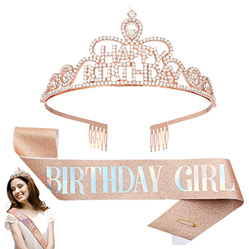 Gelukkige verjaardag kroon hoed hoofdband, prinses kroon haar verjaardag etiquette verjaardag meisje, roos goud kleurrijke lettertype, gebruikt voor verjaardagsfeest accessoires