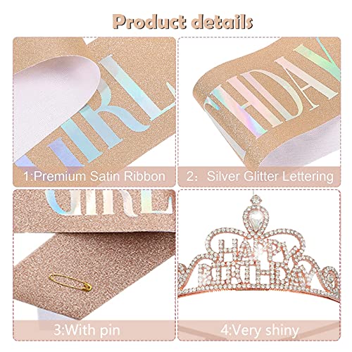 Specification: Gelukkige verjaardag kroon hoed hoofdband, prinses kroon haar verjaardag etiquette verjaardag meisje, roos goud kleurrijke lettertype, gebruikt voor verjaardagsfeest accessoires