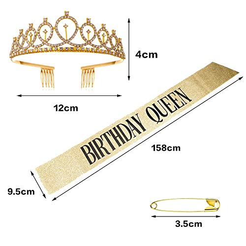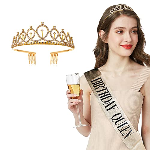 Specification: Verjaardag sjerp en kroon, gouden kristal Tiara kroon en koningin sjerp, feestgeschenken set voor vrouwen verjaardag viering benodigdheden decoraties
