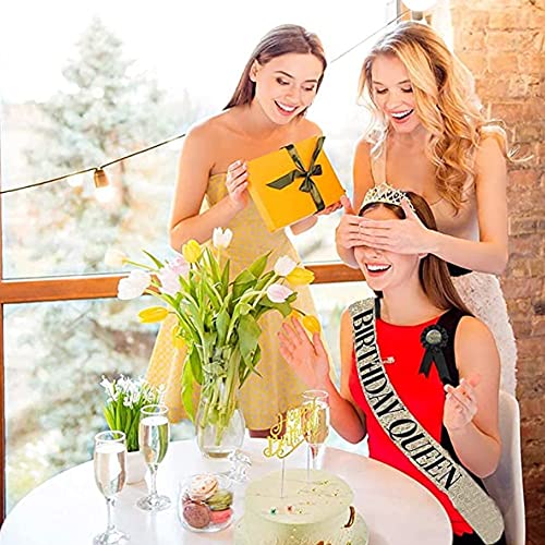 Hoogwaardig materiaal: onze verjaardagssjerp en kroon zijn gemaakt van hoogwaardige legering en strass, en de verjaardagsband ziet er zo helder uit als kristal, dat is van zachte glitterstof met hete geperste stempelfolie zal elke outfit gisterdag in de nacht complimenteren.