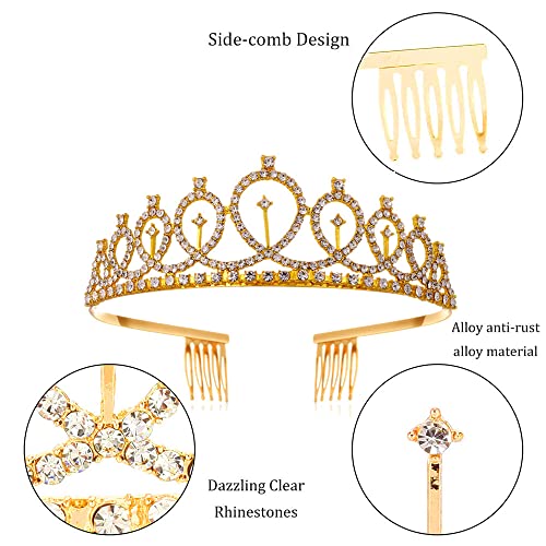 Glitter Tiara: veel kristallen en strass steentjes zijn mooi ingelegd op de gouden kroon en deze kristallen schitteren onder de zon of kunstlicht, je kunt hem gemakkelijk dragen en toch comfortabel voelen, gemakkelijk te combineren met je verschillende kapsels.
