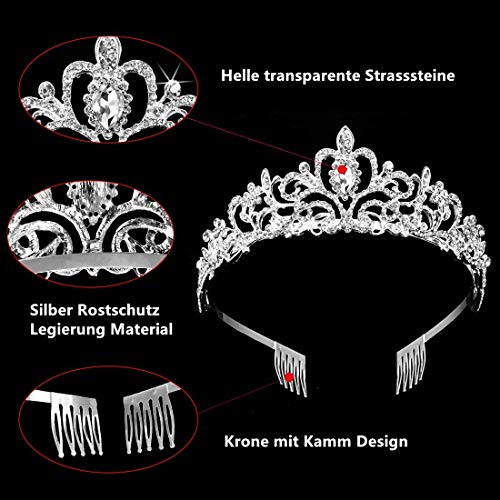 Kam-design: Er is een kamdesign voor elke kant aan het einde van de kroon zodat deze niet valt. De prachtige kroon van de zilveren bruiloft prinses is voorzien van kleine kammen aan beide zijden om het haar strakker te houden. Het ruime formaat past de meeste kinderen en volwassenen. Een goed cadeau voor Kerstmis.
