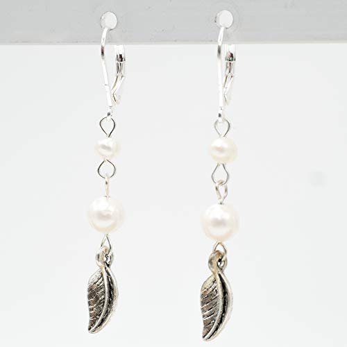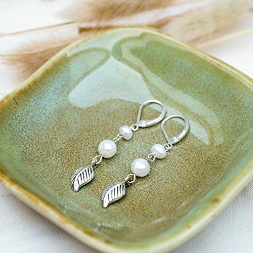 Specification: Feliss Oorbellen voor dames – hangende oorbellen 50 mm, met echte zoetwaterparels + blad hanger en Swarovski-kristal, zilver – cadeau voor vrouwen oorstekers, hangende creolen stekers