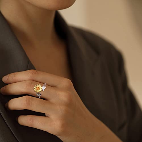 Finrezio Fidget Ringen Voor Angst Vrouwen Zonnebloem Spinner Ring Zonnebloem Bijen Ringen Verstelbare Open Duimringen voor Angst Relief