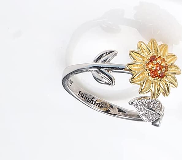 Zonnebloem Spinning Ring: Zonnebloemen symboliseren zon, warmte, geluk en schoonheid, u bent mijn zon gegraveerd op de binnenste ring van Fidget ring. Brengt positieve, zonnige kracht aan de eigenaar. Het ontwerp van bladeren en honing voegt lagen toe aan de zonnebloemring, waardoor het er verfijnder en eleganter uitziet. Het perfecte cadeau voor een geliefde die moed en geluk in haar leven brengt.