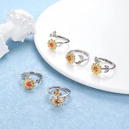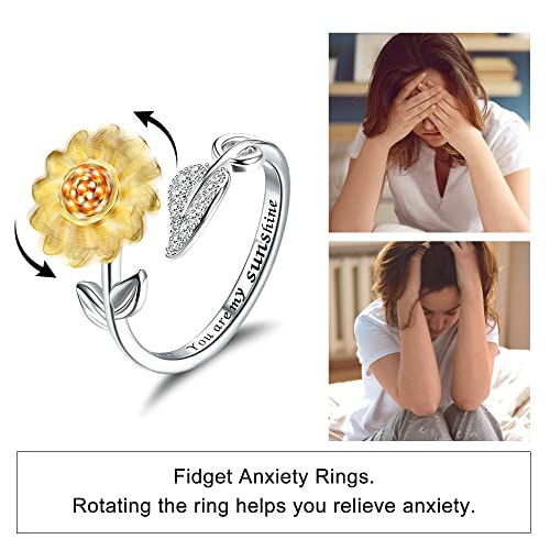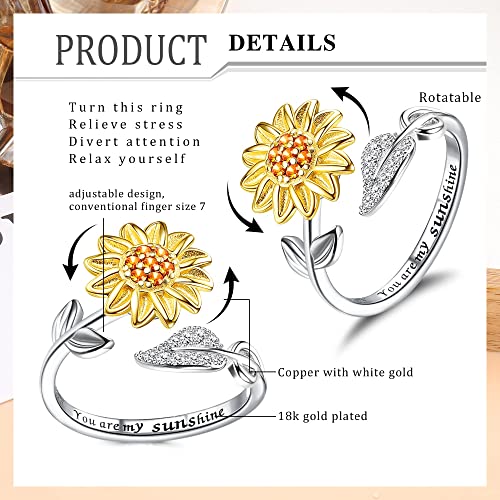 Specification: Finrezio Fidget Ringen Voor Angst Vrouwen Zonnebloem Spinner Ring Zonnebloem Bijen Ringen Verstelbare Open Duimringen voor Angst Relief