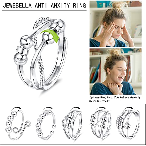 Specification: JeweBella Ring voor vrouwen, angst, zilveren ringen, verstelbaar, zilver, kralen, stressverminderende spinner ring, fidget open vingerring, koper