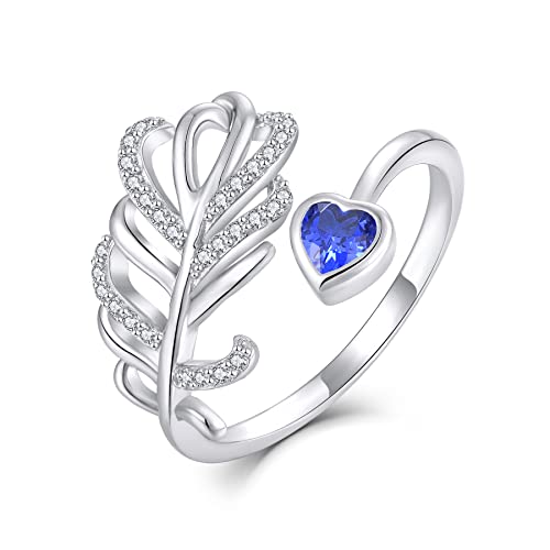 JO WISDOM 925 Sterling zilveren veren ring verstelbaar voor vrouwen
