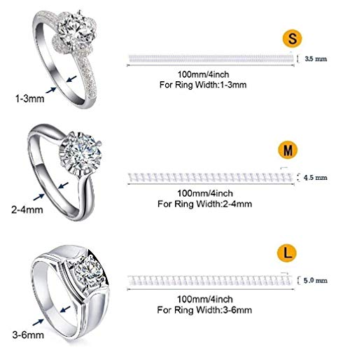 SOONPAM Ringverkleiner ring, in grootte verstelbaar, onzichtbare ringmaatinstelling, spiraalinzet, onzichtbare strip, maat adjuster, perfect voor alle maten, losse ringen met zilveren polijstdoek (4 maten), kunststof