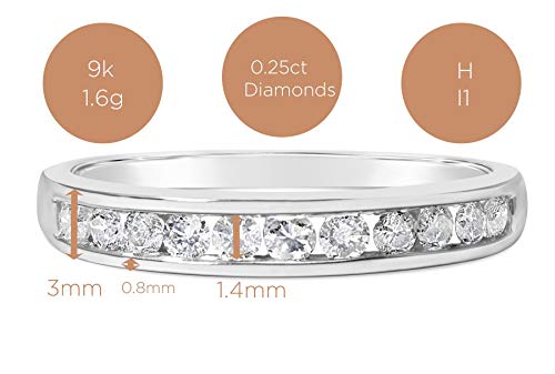 Specification: Witte gouden eeuwigheid ring voor dames met 1/4 karaat diamanten van premium kwaliteit. Ideaal jubileumgeschenk met een eeuwigheid van natuurlijke diamanten rond de bovenste helft van de ring. Met diamantsortering rapport en luxe doos.