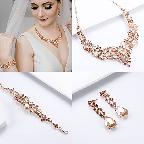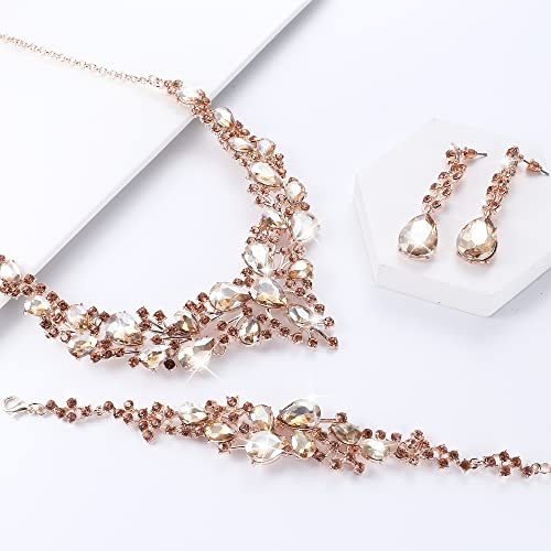 JeweBella Bruids bruiloft sieradenset voor vrouwen kristallen traan cluster statement ketting oorbellen en armband set geschenken bruiloft verloving bruidsmeisje kostuum jurk bal sieraden sets