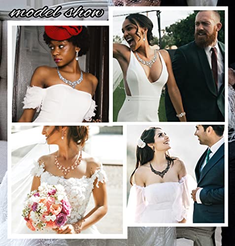 Specification: JeweBella Bruids bruiloft sieradenset voor vrouwen kristallen traan cluster statement ketting oorbellen en armband set geschenken bruiloft verloving bruidsmeisje kostuum jurk bal sieraden sets